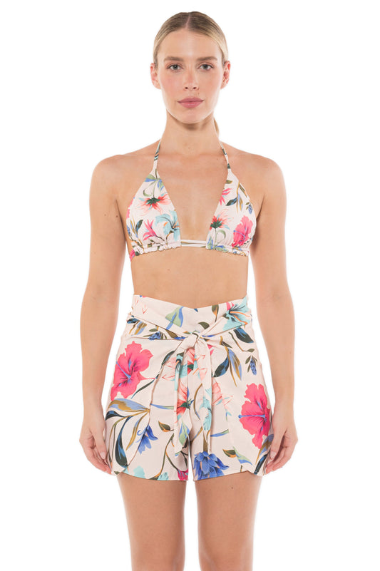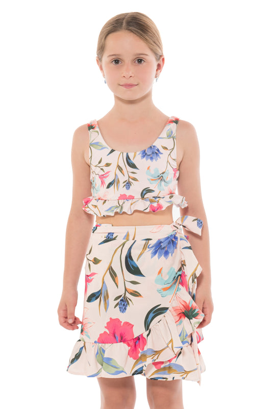 Falda corta envolvente con amarre en el costado, ideal para complementar su look de playa...