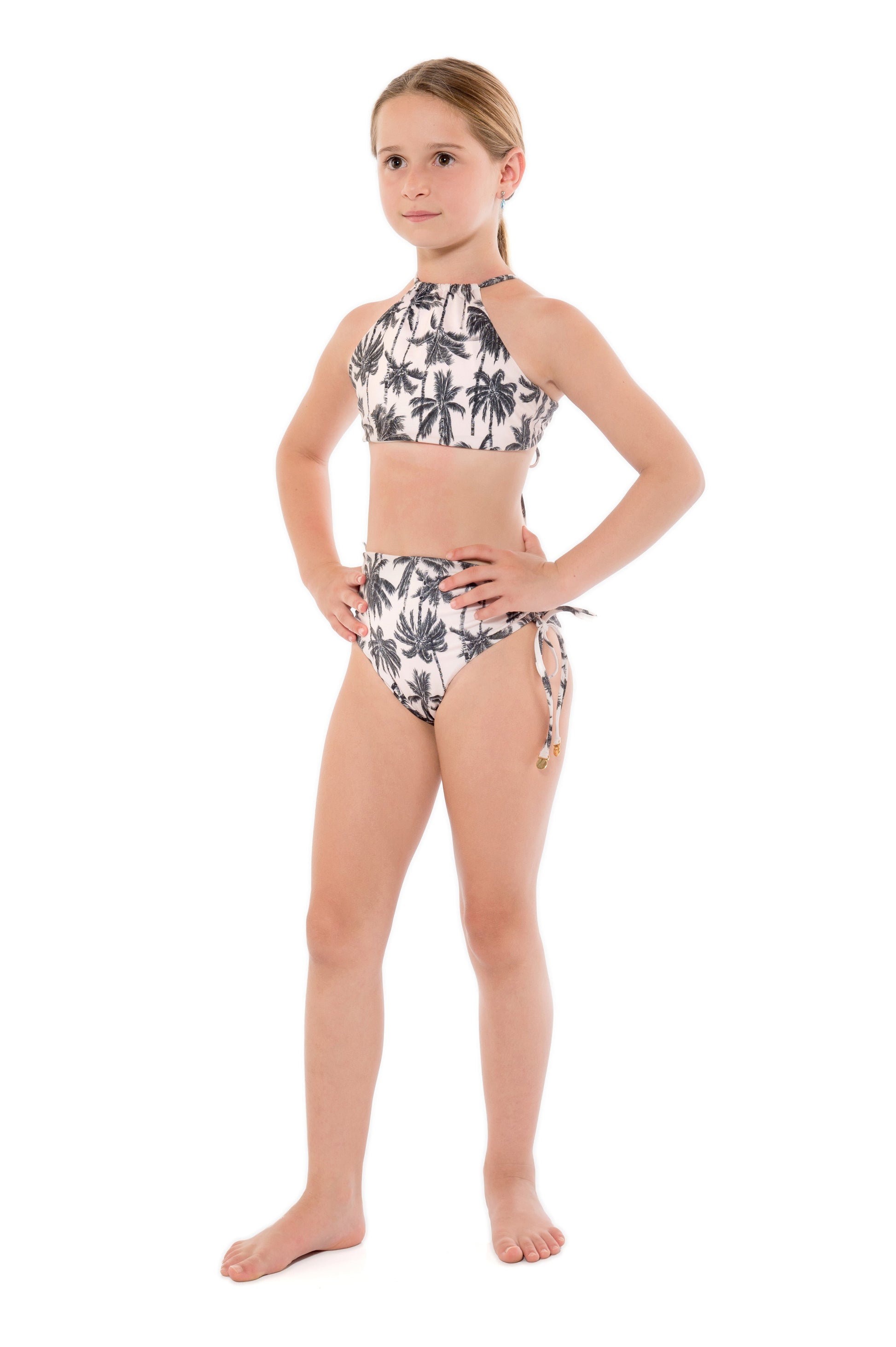 Este bikini tipo halter cuenta con cargaderas ajustables que brindan un ajuste cómodo, seguro y perfectamente adaptable. Su diseño de cobertura moderada, combinado con un print lleno de color, lo convierte en una opción divertida, funcional y encantadora para que las más pequeñas disfruten del agua con total libertad.