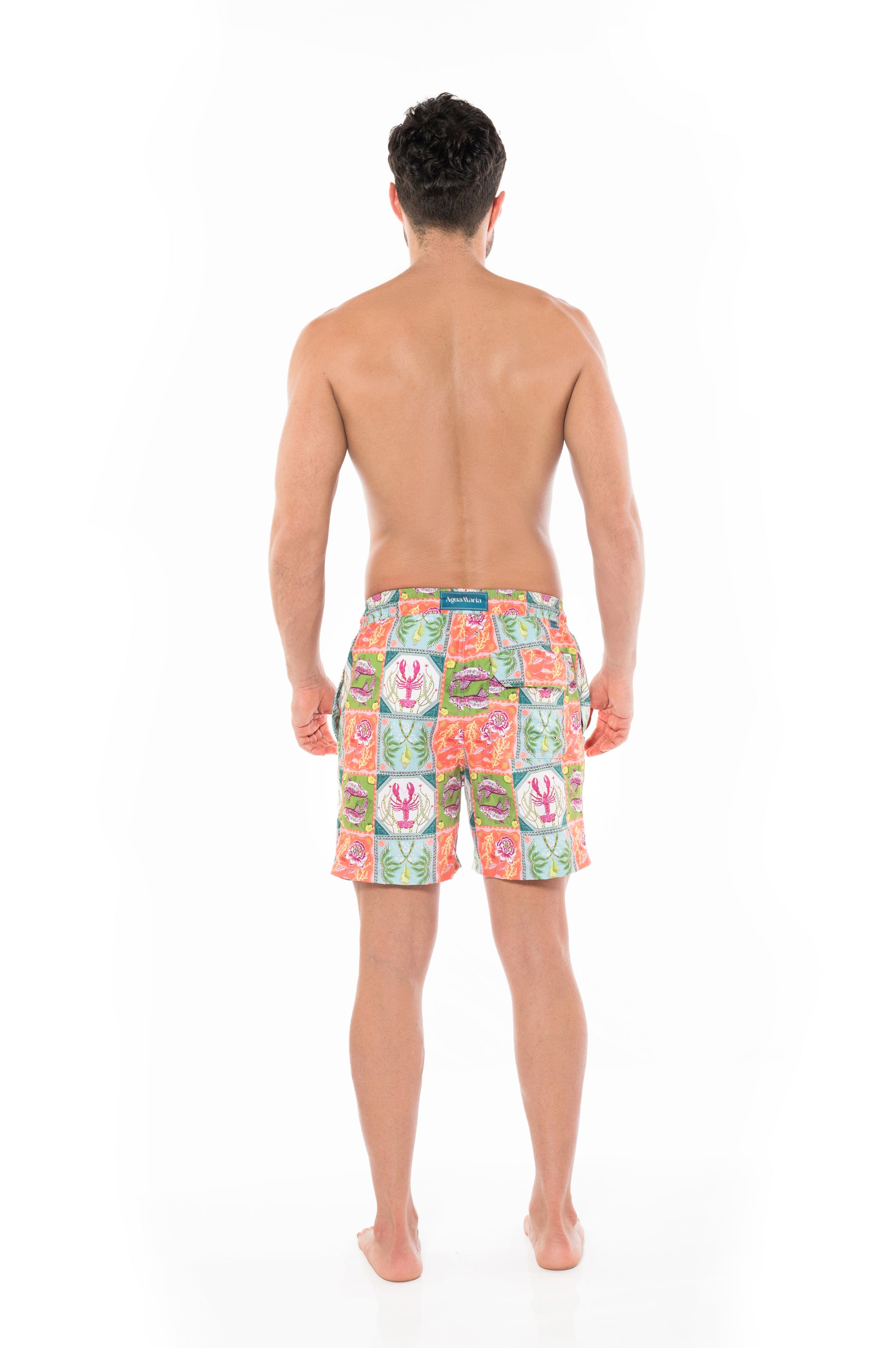 Pantaloneta de baño con diseño funcional y cómodo. Cuenta con ajuste en la cintura mediante cordón, bolsillos laterales y bolsillo posterior con velcro, ideal para mayor practicidad, perfecto para días de playa o piscina.