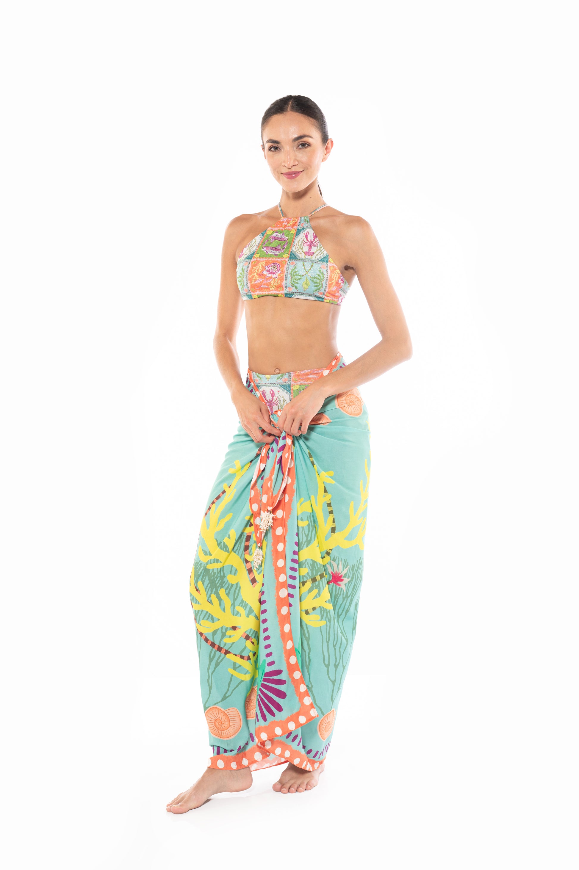 Ligero y versátil, el Pareo Touch está confeccionado en viscosa suave al tacto, ideal para complementar tus looks de playa o piscina. Su diseño combina a la perfección con las piezas de la colección, ya sea como falda, vestido improvisado o accesorio.