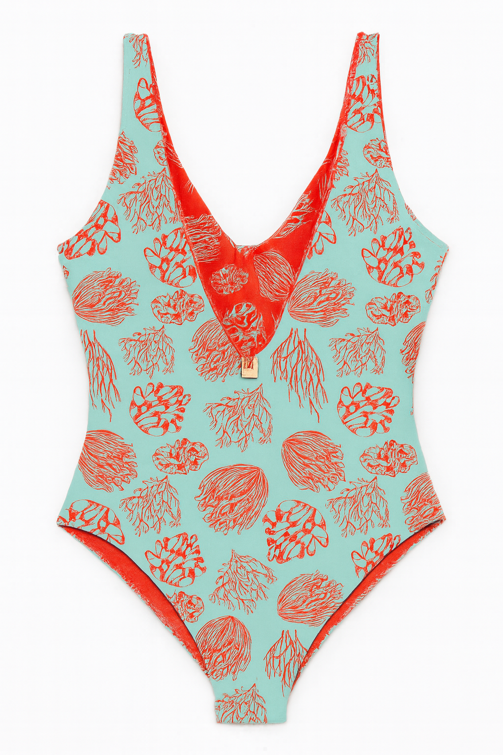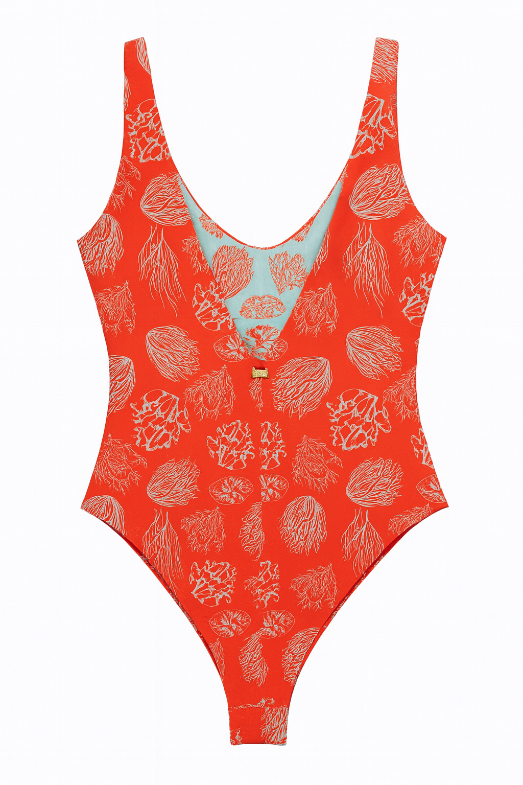 Enterizo Domenica Reversible Coral Naranja/Verde