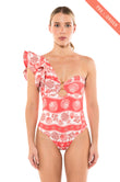 Este enterizo, con un print de conchas y algas que rinde homenaje al estilo marinero clásico, es la pieza perfecta para darle un toque fresco y sofisticado a cualquier look.