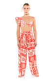 Pantalón de talla única con diseño ajustable mediante tiras que se amarran al frente y en la parte posterior, permitiendo adaptarlo al cuerpo con total comodidad.