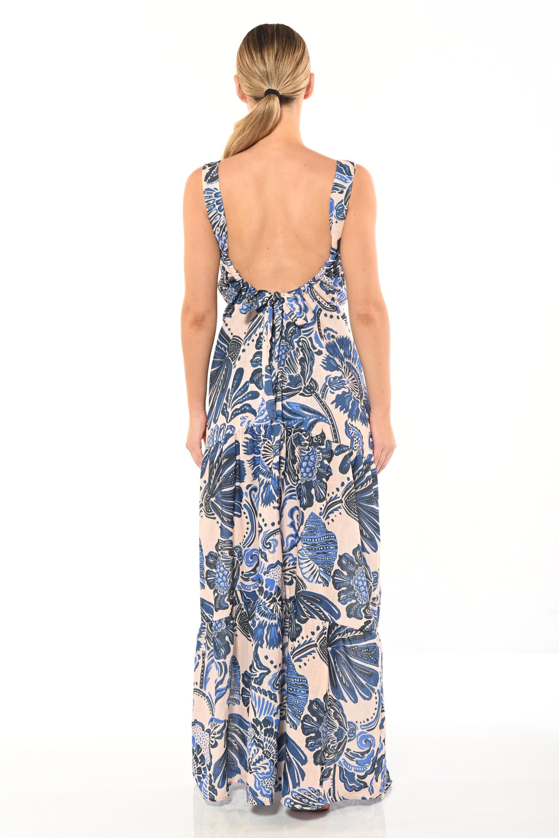Fresco, ligero y lleno de movimiento, el Vestido Mágara Ocean Escape destaca por su elegante print Ocean Escape, inspirado en rayas marinas y flores en tonos de azul, que nos transporta a un universo donde la frescura del mar y la elegancia náutica se encuentran.
